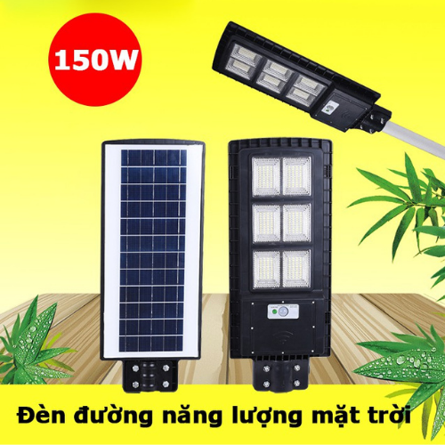 - Đèn Đường Năng Lượng Mặt Trời 150W (Liền Thể) bao gồm tấm pin mặt trời ở mặt trên.