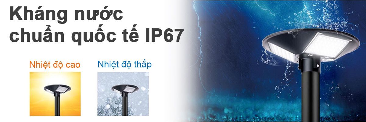Với bất kỳ mọi vị trí, mọi loại thời tiết đèn năng lượng mặt trời UFO đều có thể chống chịu tốt nhờ vào công nghệ kháng nước, chống bụi chuẩn quốc tế IP67.