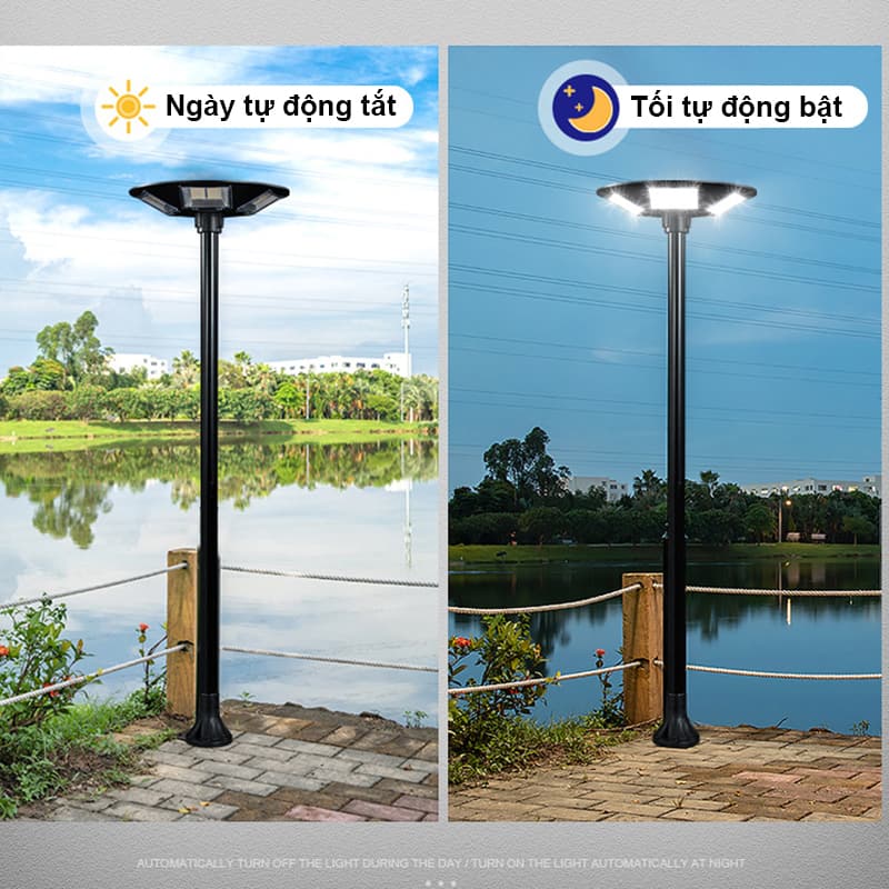 - Đèn năng lượng mặt trời UFO sở hữu thiết kế hiện đại, tăng tính thẩm mỹ cho các khu vực đường phố, công viên. Đèn ufo được thiết kế cảm biến tròn nên có thể nên có thể tạo ra ánh sáng đều xung quanh khu vực lắp đặt mà không bị hạn chế góc độ chiếu sáng.