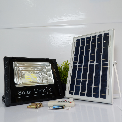 - Đèn pha năng lượng mặt trời Solar Light 60W là loại đèn được tích hợp sẵn điều khiển từ xa và đặc biệt được nhiều người ưa chuộng và sử dụng rộng rãi. Đèn pha năng lượng mặt trời Solar Light 60W có công suất 60W chiếu sáng khá được với diện tích lớn, thích hợp để thay thế cho đèn pha led thông thường mà không phải mất chi phí thanh toán tiền điện nên rất tiện dụng. Đèn pha năng lượng dùng làm đèn chiếu sáng cho cổng, bảng hiệu quảng cáo hay sân vườn, biệt thự và các vị trí khác theo nhu cầu sử dụng.