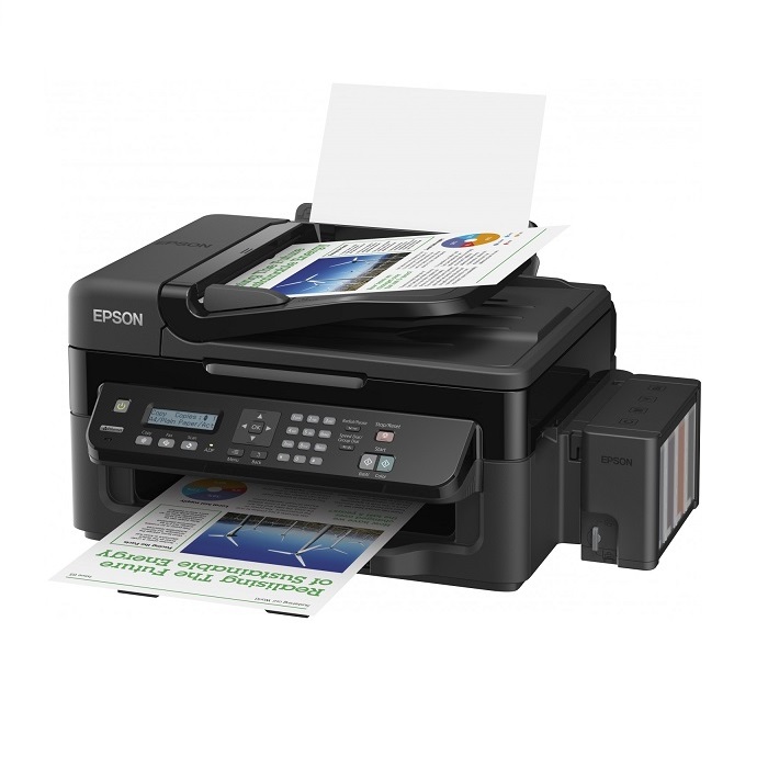 Máy in Epson L550 có số lượng trang in vô địch với chi phí siêu tiết kiệm, hổ trợ đầy đủ tính năng cần thiết, bao gồm cả Fax Người dùng doanh nghiệp và SOHO chắc chắn sẽ đánh giá cao hiệu năng hoạt động vô song của máy in L550 với sự tích hợp tất cả các tính năng in, scan, sao chép và fax vào trong cùng 1 máy in có thiết kế gọn nhẹ cùng với bộ phận nạp giấy tự động 30 tờ. Tiết kiệm nhiều hơn với số lượng trang in cao Hệ thống bình mực chính hãng danh tiếng của Epson tạo ra các bản in có tuổi thọ cao với mực chi phí thấp nhất. Với chỉ 5.50$/bình mực, máy in Epson có thể in lên đến 4000 trang đen trắng.