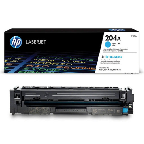 - Hộp mực máy in laser HP 204A Cyan (CF511A) là sản phẩm mực in chính hãng HP màu Xanh. Hộp mực in Laser chính hãng đáng tin cậy của HP được thiết kế chuyên dùng cho các dòng máy in HP Color LaserJet Pro M154a - M154NW - M180N - M180FW.